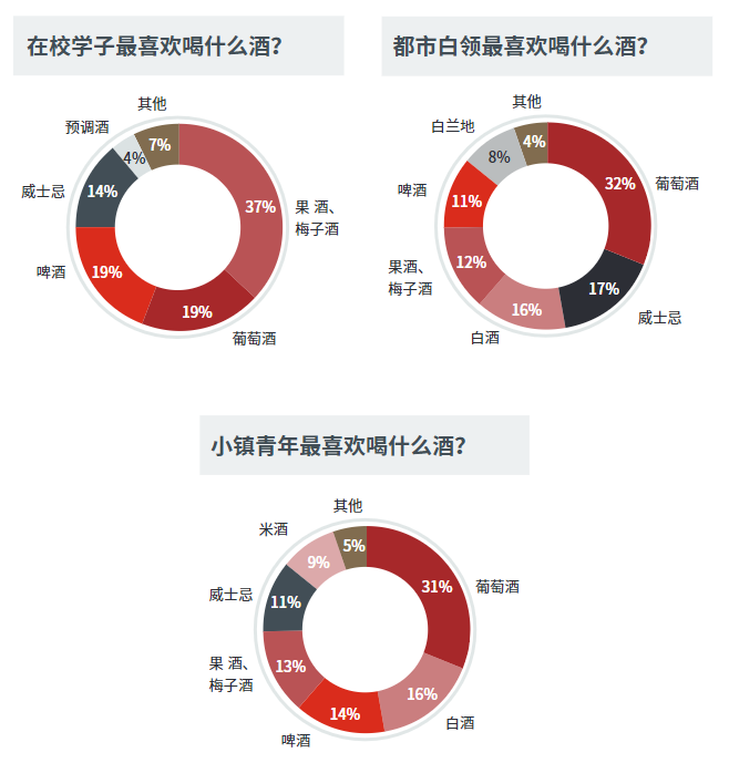 据里斯咨询发布的《年轻人的酒品类创新研究报告》中显示:葡萄酒受到近 1/3 都市白领和小镇青年青睐,同时也是近 1/5 高校学子第二爱喝的酒。