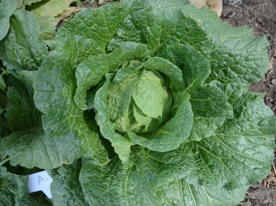 杂交种。中熟品种,结球坚实美观。株高35厘米,开展度50厘米×50厘米,外叶绿,白帮,球叶合抱,炮弹型,定植后62天收货,单球重2.8-3.5公斤;球高29厘米,直径22厘米,纤维少,口感细腻,中心苔柱平。中抗芜菁花叶病毒病和霜霉病。