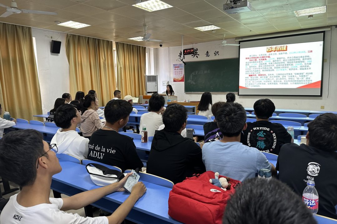 大学生活是每个人生命中最精彩的部分,这百年来,江财的校园里记载了每一位校友奋斗的足迹。正值江财百年校庆,为引导新生充分感受学校的历史底蕴和文化情怀,国际经贸学院组织各班开展了以迎百年校庆,热情接待校友返校为主题的班会,进一步引导新生感受校训“信敏廉毅”的丰富内涵,增强新生对学校的认同感和归属感,通过聆听校友成长故事,激励国贸学子进一步确立自己的理想和目标,成长为有理想、敢担当的时代新人。