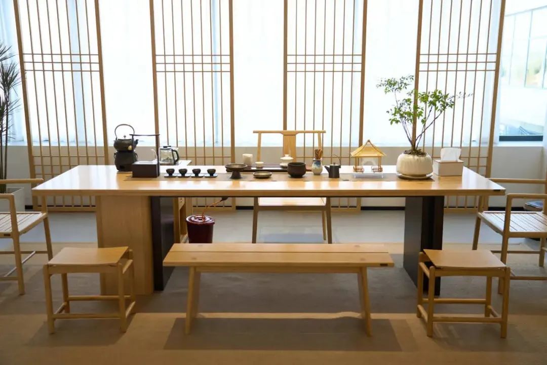 1、简作竹茶空间-空灵茶桌:新中式实竹茶桌椅,由武夷山楠竹制成。采用榫卯工艺,直棂设计,增强桌子承重力的同时,也彰显了东方禅意美学。桌面内嵌石茶盘,质感细腻,易于清洁。一桌一椅,竹韵茶香,品味质感茶生活方式。