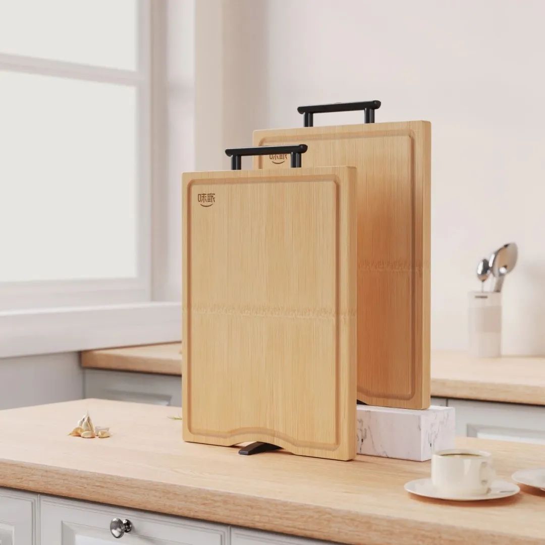 2、味家健康餐厨-整竹砧板:砧板采用整竹工艺,优选武夷山楠竹展开而成,表面非拼接、0胶水。搭载品牌首创的iFresh智能抗菌防霉健康系统,专利技术,抗菌率≥99.9%,长效抑制霉菌滋生。