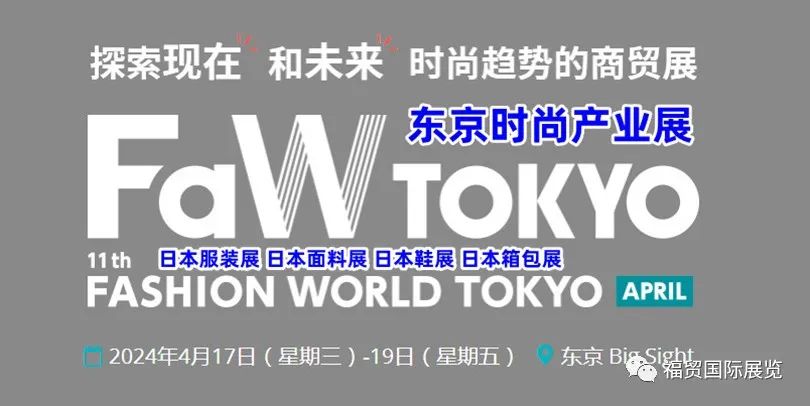 日本规模最大的时尚展——日本东京时尚流行成衣服装服饰,箱包,鞋类,饰品配件,布料辅料海外面料,时尚科技相关产品展览会 FASHION WORLD TOKYO ( FaW TOKYO ),将于2024年4月15-17日在东京国际展览中心(Tokyo Big Sight)隆重举办春季展!预计世界36国 1,250社出展!日本最大のファッション展!