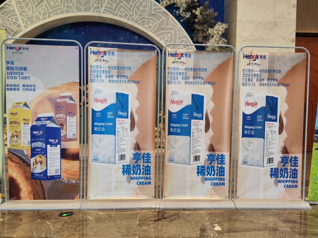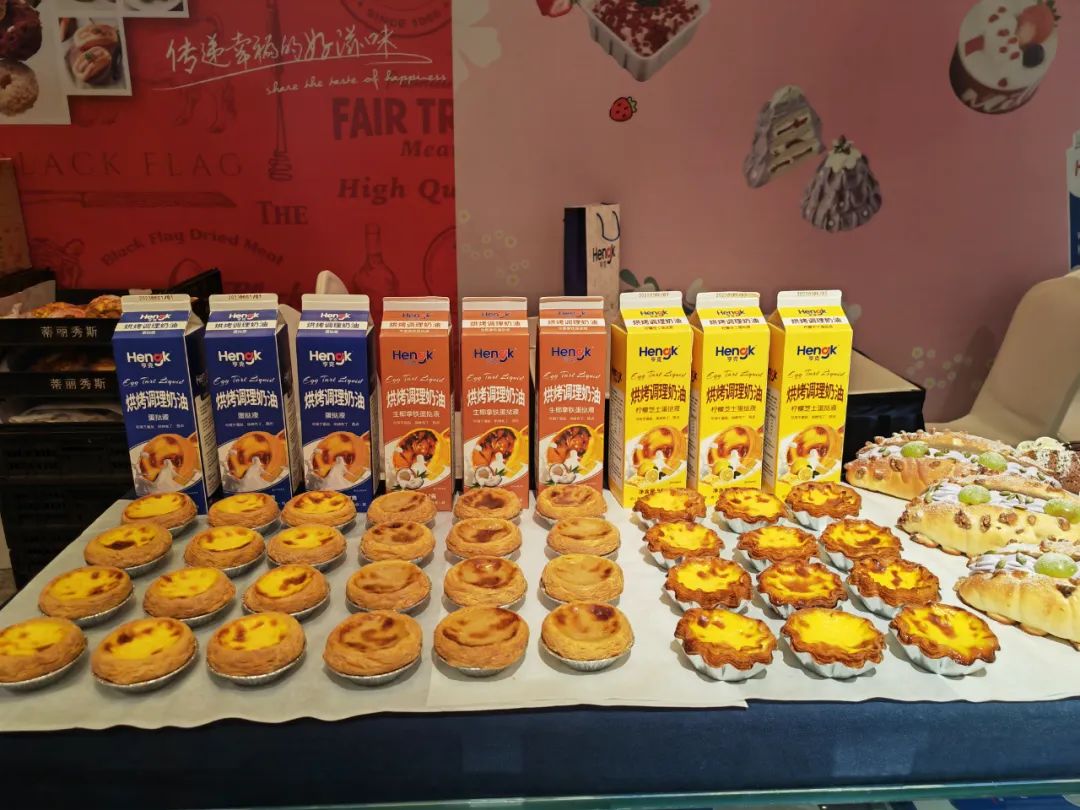 由武汉亨克食品研发生产的国产纯正稀奶油亨佳,以“高性价比、高稳定性、高打发率、乳脂肪含量35.5%”等优势,备受与会者的青睐。同时,武汉亨克食品还展示了最新研制、差异化与独特风味蛋挞液系列的《亨克蛋挞三剑客》——柠檬芝士、生椰拿铁、原味蛋挞液,刷新了蛋挞液使用者与消费者对传统口味蛋挞液的认知。
