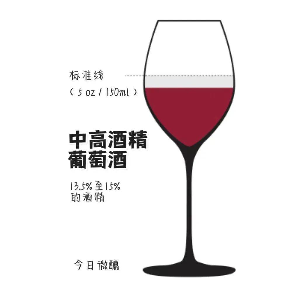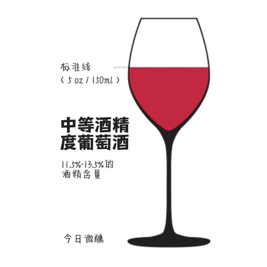 事实上,美国标准的葡萄酒是一杯(5盎司)中等酒精含量的葡萄酒。大多数欧洲葡萄酒以及美国廉价葡萄酒都属于这个范围。