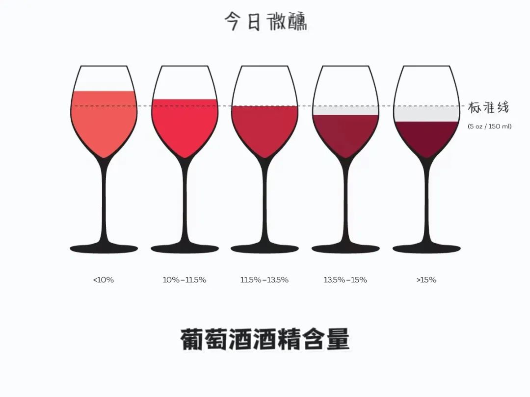 提示:酒精度越高,葡萄酒的味道就越大胆、越浓郁。