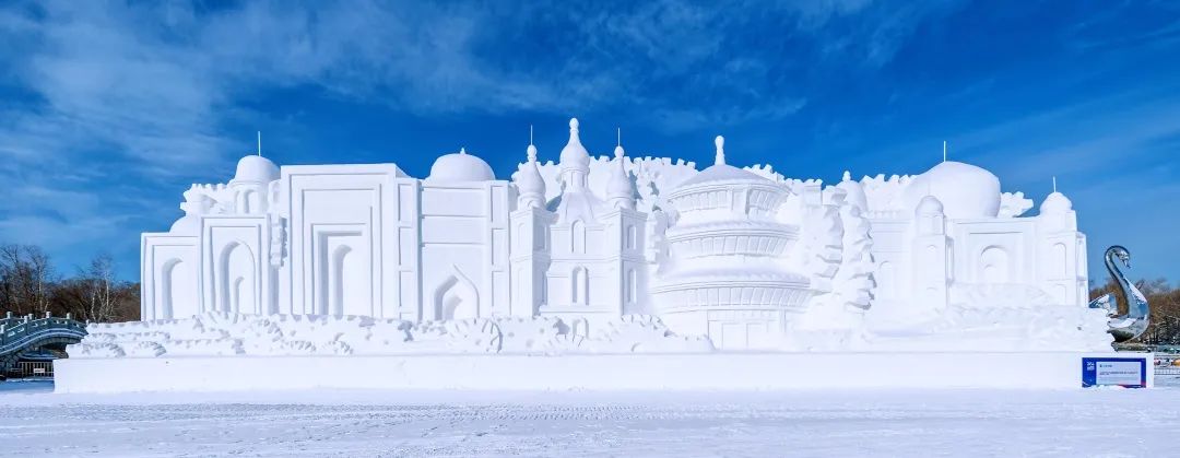 太阳岛雪博会作为一个国际性的雪雕盛会,此次作此展示,尽显文化包容与文化自信,彰显国际范儿,同时也表达了太阳岛雪博会希望祖国外交关系越来越好,发展机遇越来越多,祖国更加繁荣昌盛的美好祝愿。