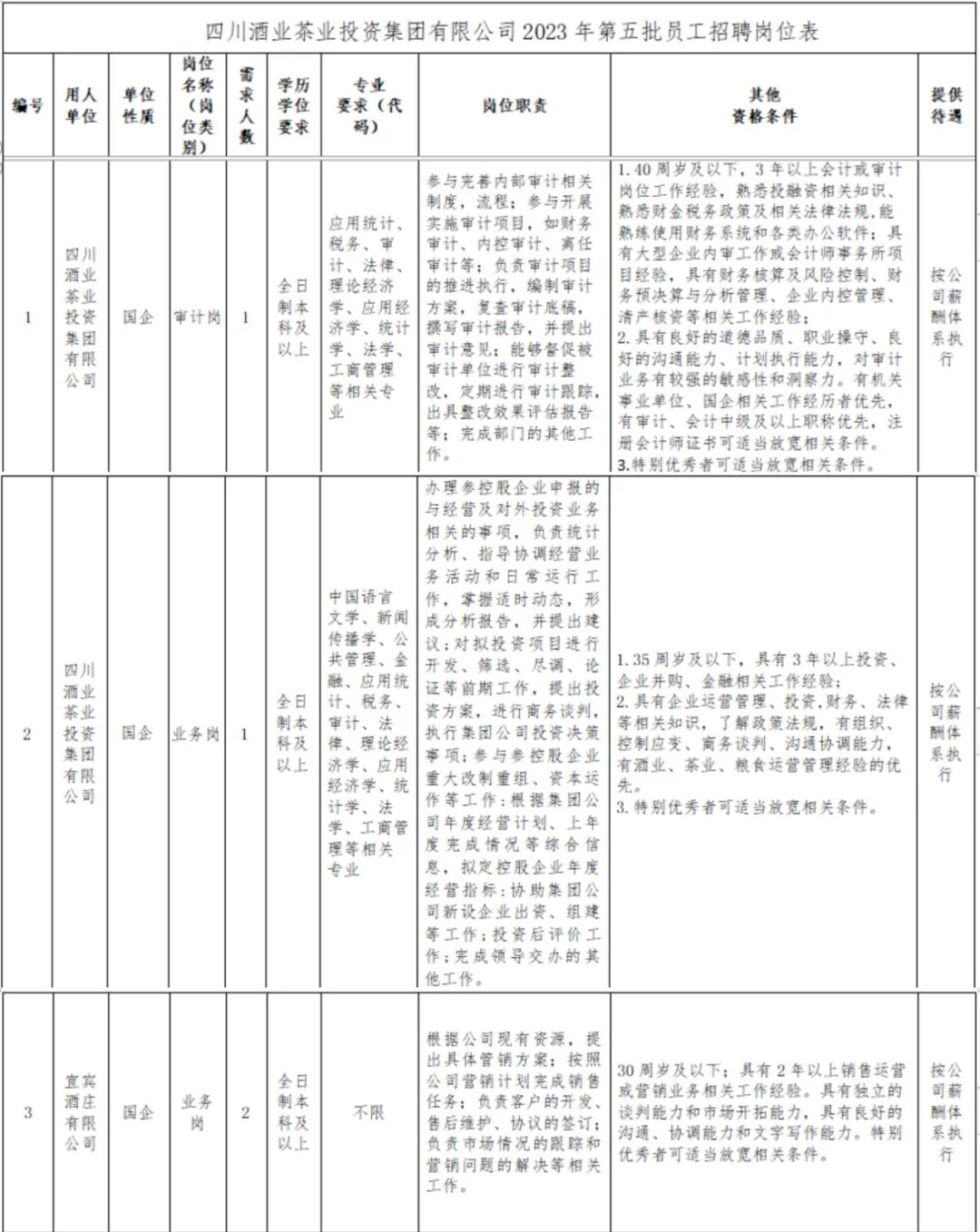 四川酒业茶业投资集团有限公司根据相关程序集体研究确定拟聘用人选。按照择优录取、注重实干原则,若四川酒业茶业投资集团有限公司研究认为不适宜聘用的可终止本次岗位招聘。
