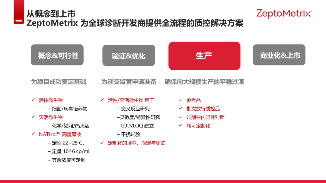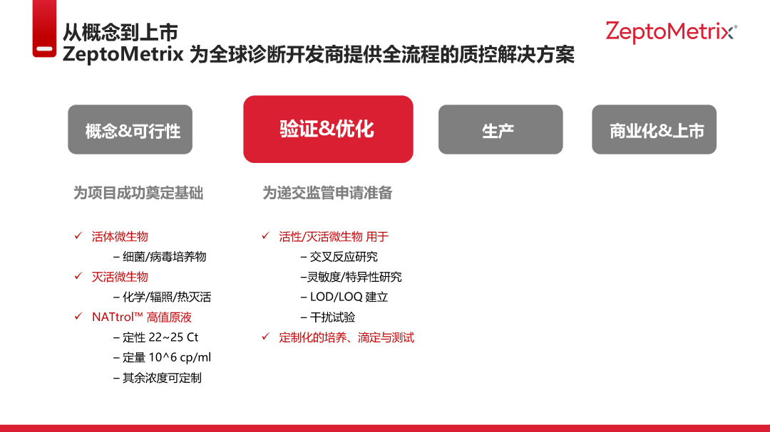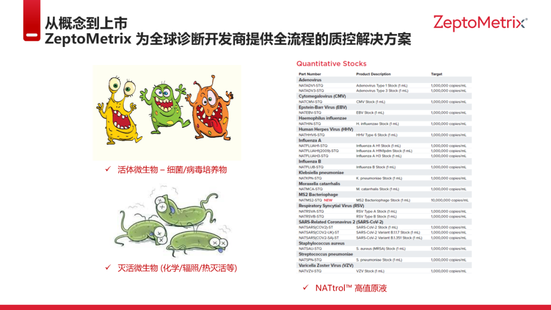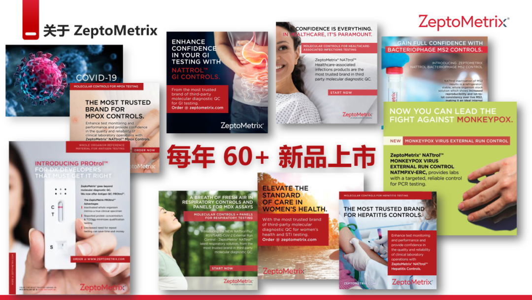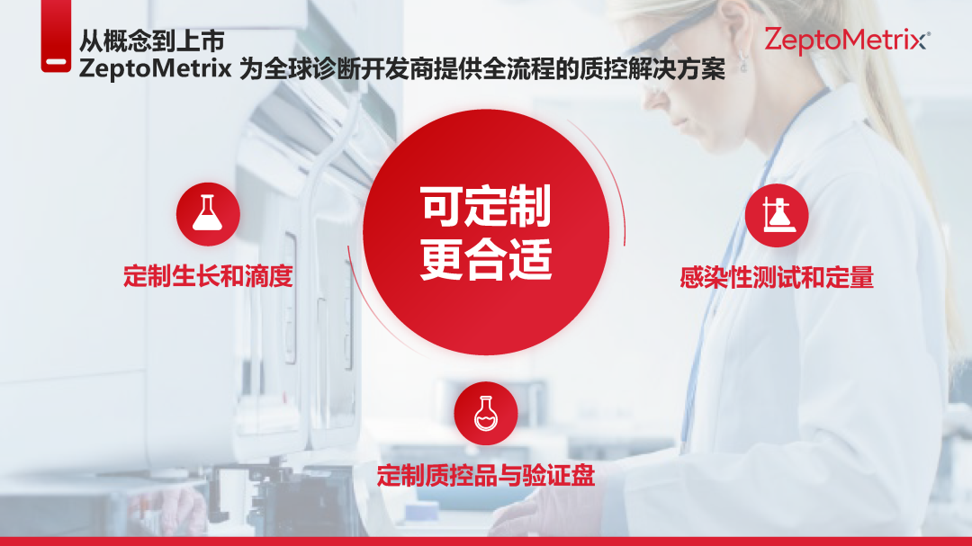 在ZeptoMetrix,我们以成为客户信赖的合作伙伴为使命,以助力全球传染病诊断服务水平的提升为愿景。如今凭借在微生物学、分子生物学、免疫学和肿瘤学等领域的专业知识和在病原微生物溯源、繁殖、纯化、进一步加工方面的技术整合能力,我们持续为全球诊断客户提供创新型产品和定制化服务。