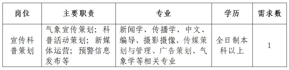 2.有较强执行力及沟通能力,能独立完成气象宣传科普策划;