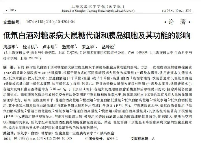 进一步的医学实验显示,低氘白酒干预能显著降低实验对象糖尿病的空腹血糖水平,提高血浆胰岛素水平;减轻因过量饮酒导致的胰岛细胞损伤。