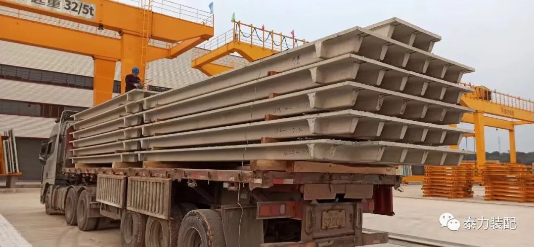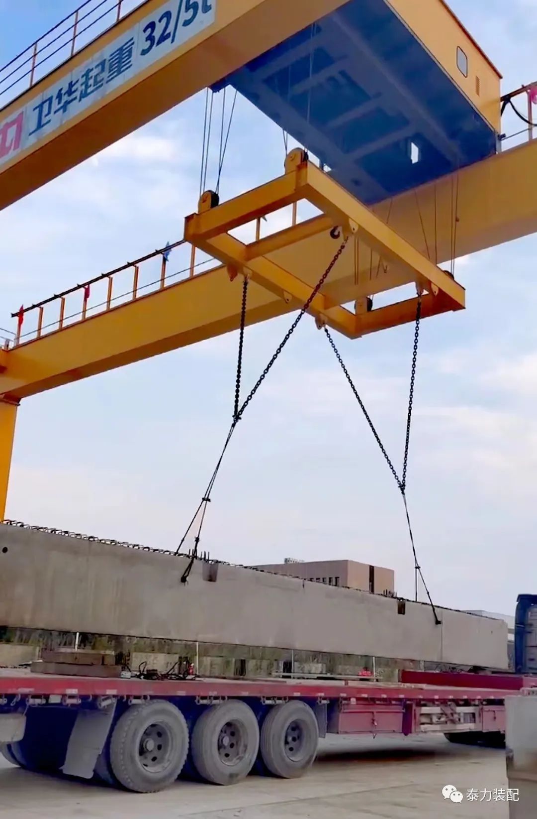 为确保项目PC构件顺利完成首吊,泰力装配提前制定包括生产、运输、吊装、施工等关键节点详细的方案,公司派驻相关生产技术人员进驻现场。吊装当日,公司总经理朱云凤、生产副总刘普坤亲自抵达现场,配合现场吊装工作。本次吊装为该项目2#酿造车间装配式吊装作业,主要采用多肋板及预应力梁等装配式PC构件。通过前期精准计算设计,智能化生产预制,能最大限度提高施工效率,保障项目整体安全质量。