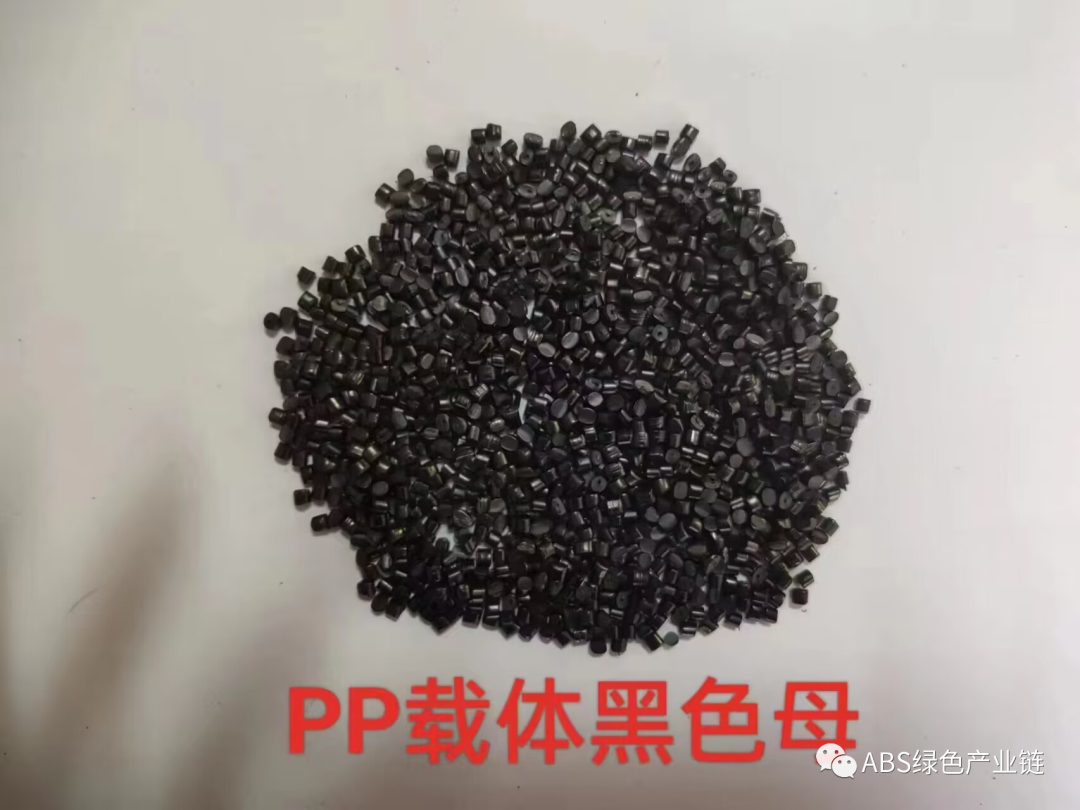 中端黑色母:PE载体(新料)或者聚乙烯蜡载体+中色素碳黑+国产助剂。
