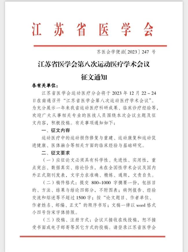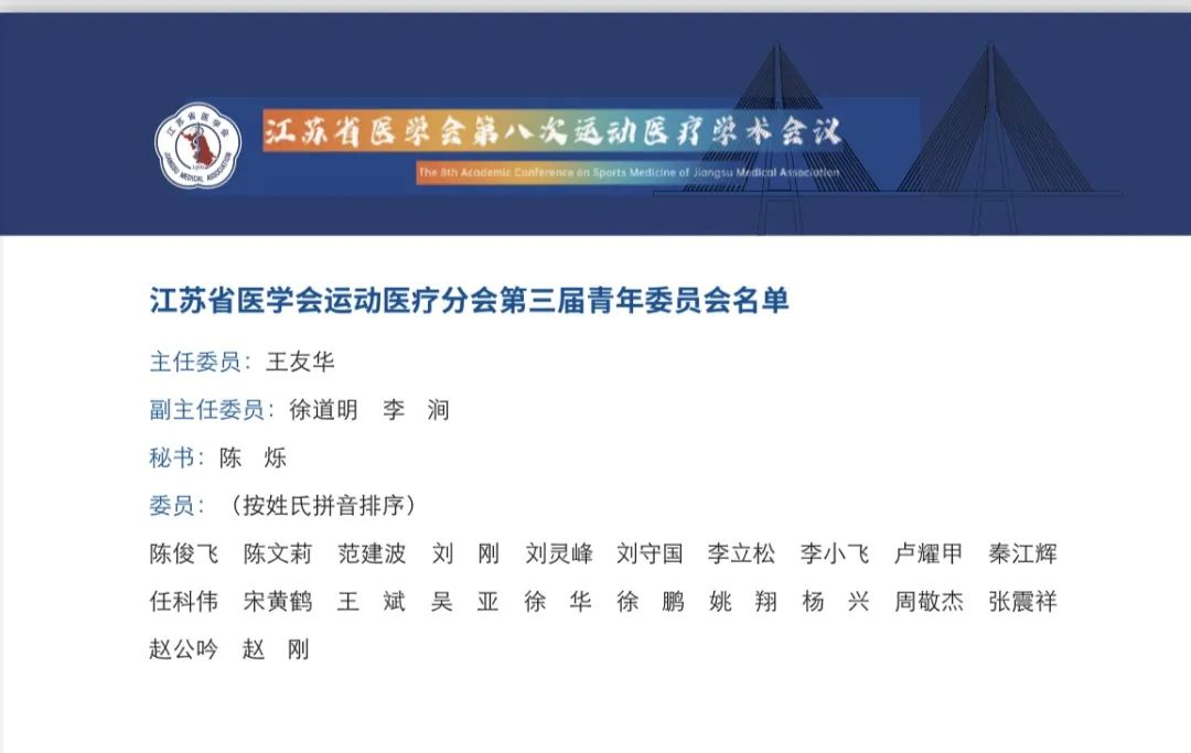 为充分展示一年来江苏省运动医疗科研成果、临床诊疗经验等,“江苏省医学会第八次运动医疗学术会议”于2023 年 12 月 22~24日在南通召开。苏大附二院援建专家李涧主任作为青委会副主委带领淮安市第五人民医院的骨科团队赴南通参加此次会议。