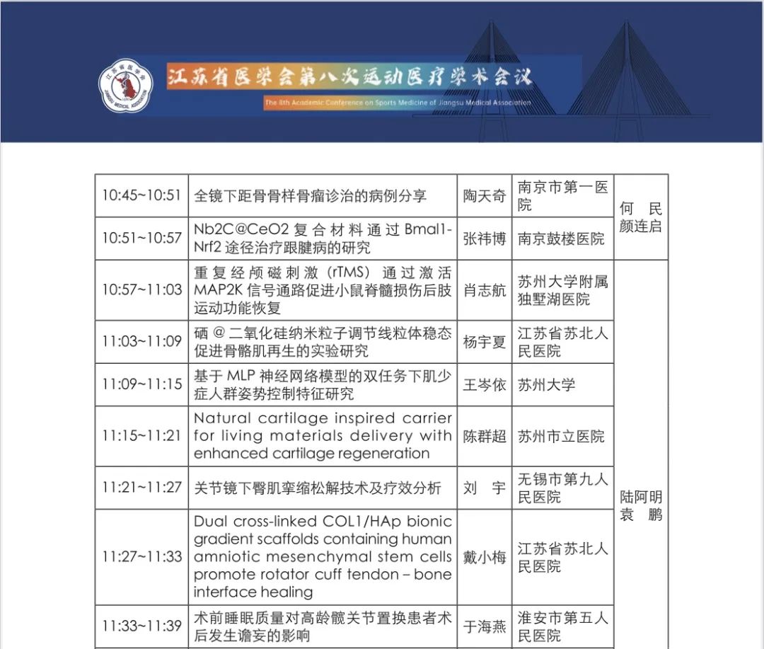 江苏省运动医学年会是一场聚焦运动医学学术发展的饕餮盛宴,为江苏省运动医学领域学术交流搭建了高质量、高水准的交流平台。在为期2天的参会过程中,淮安市五院的参会代表通过与省内外运动医学同道交流切磋,展现了运动医学团队学术建设的成效与风采,提升了淮安市第五人民医院在省内外运动医学领域基础和临床的学术地位,加强了与国内知名医院专家的交流合作。
