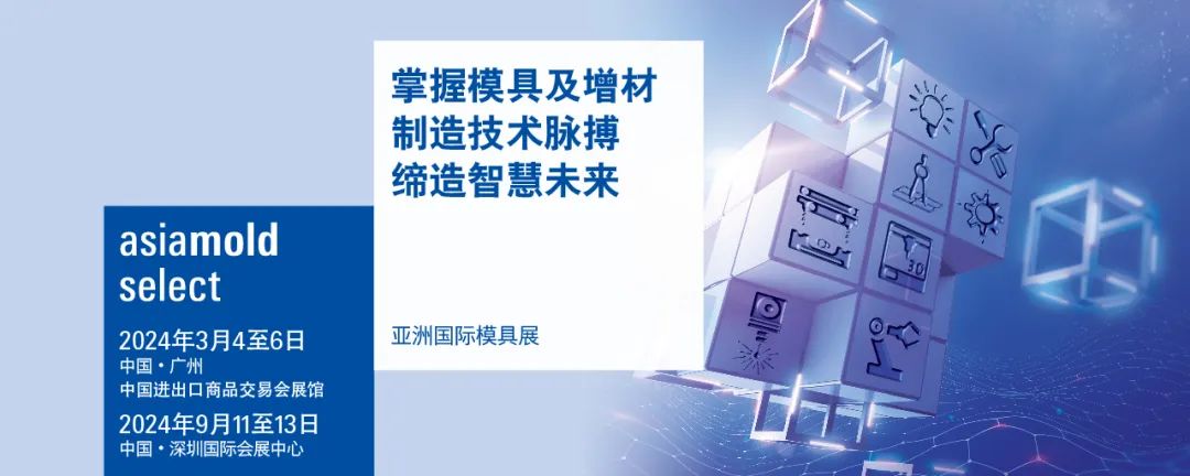 为更好地支持华南地区制造行业的发展,一直备受华南模具制造和应用行业认可的广州国际模具展览会 (Asiamold),将于2024年起品牌焕新,打造全新亚洲国际模具展(Asiamold Select)---广州站,于2024年3月4-6日在广州再度回归。全方位展示高效丶创新丶绿色的前沿模具丶3D打印丶压铸丶冲压等成型技术及解决方案,充份发挥智能制造和模具行业之间的巨大协同效应,助力华南制造业迈向智能化和数字化的升级转型。