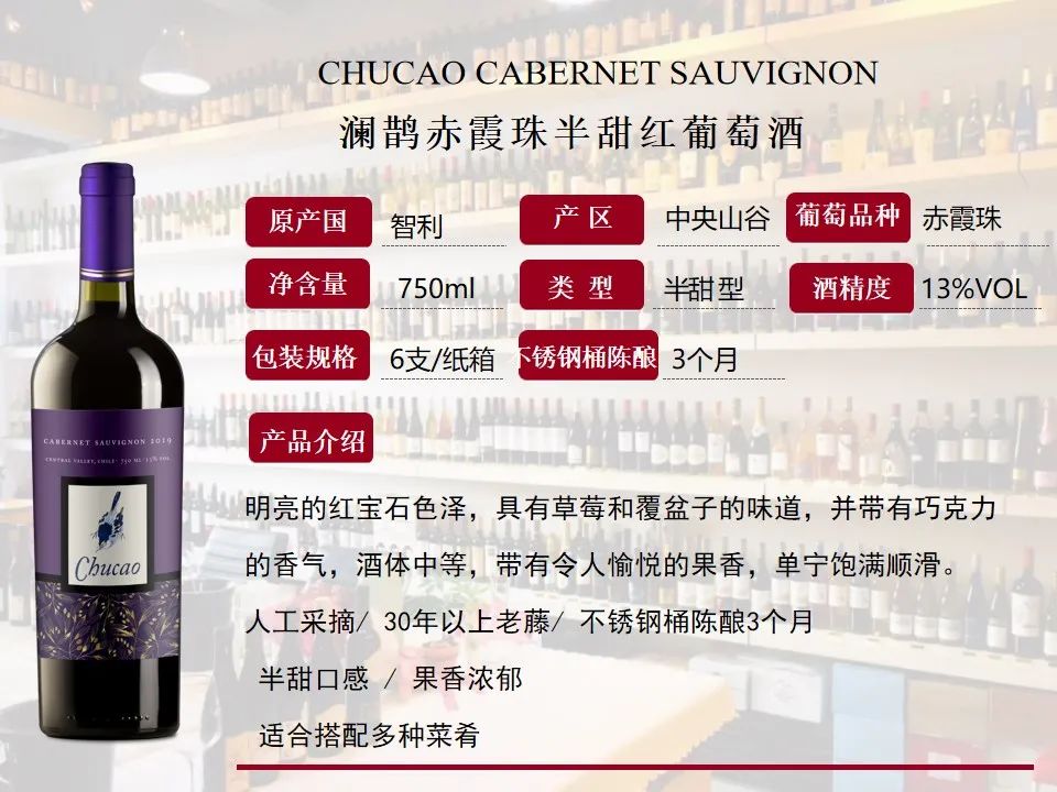 明亮的红宝石色泽,有草莓和覆盆子的味道,并带有巧克力的香气,酒体中等,带有令人愉悦的果香,单宁饱满柔顺。