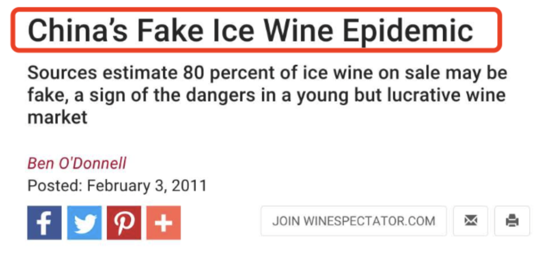 据葡萄酒观察家(winespectator)的一篇报导指出:中国市场销售的80%冰酒可能是假的……
