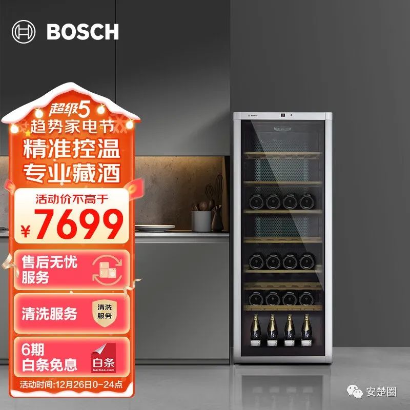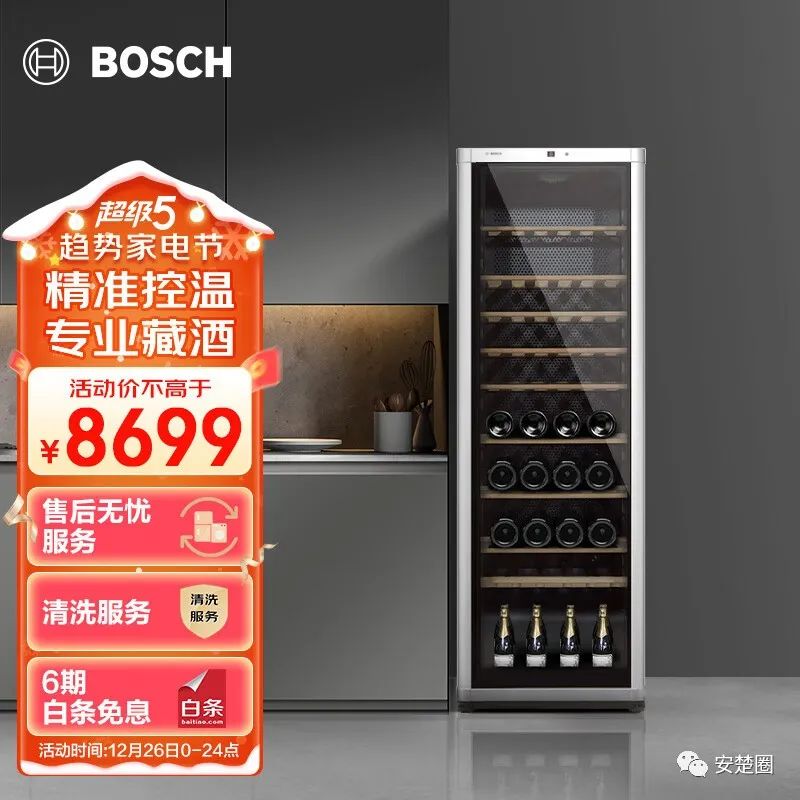 这款酒柜是博世的醇萃系列,它可以容纳120瓶葡萄酒,适合家用或商用。它有专业温控系统和空气湿度平衡系统,可以保持5~22℃的恒温和50~80%的恒湿,适合各种类型的葡萄酒。它的制冷系统是进口的,稳定柔和,可以避免冷凝水的产生,保护酒的品质。它的箱门是钢化玻璃,可以防止紫外线对酒的影响。它的搁架是橡木的,可以减少震动对酒的影响。
