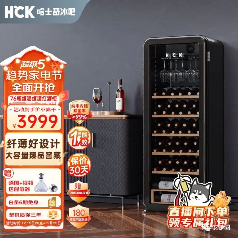 这款红酒柜是哈士奇的热卖款之一,以其高品质和时尚设计而闻名。这款红酒柜采用了纤薄圆弧的外观,不仅节省空间,还增添了美感。它可以嵌入式安装,也可以独立式摆放,适合家用、办公室、酒店等场所。它的容量为76瓶,可以满足不同的收藏需求。它采用了风直冷的制冷方式,可以实现恒温恒湿的存储环境,保证红酒的品质和口感。它还配备了木质层架和钢化玻璃门,既坚固又美观,还可以防止紫外线的侵入。它的控温方式为电子控温,操作简单,还有LED显示屏和触摸按键,方便查看和调节温度。