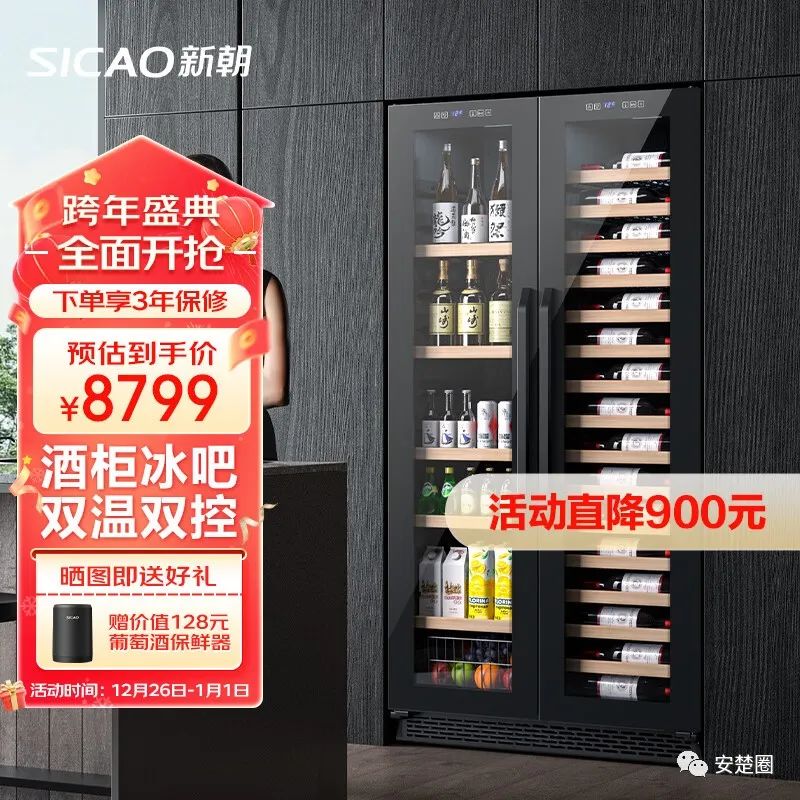 这款红酒柜是新朝的热卖款之一,以其专业技术和创新理念而受到消费者的青睐。这款红酒柜采用了双开门的设计,可以分别存放不同种类的酒,如红酒、白酒、啤酒等,也可以存放茶叶、饮料等其他物品,功能多样,适合家用、客厅、餐厅等场所。它的容量为260升,可以存放120支红酒,是一款大容量的酒柜。它采用了压缩机风冷的制冷方式,可以实现双温双控的存储环境,可以根据不同的酒类设置不同的温度,保持酒的风味和香气。它还配备了橡木酒架和镜面玻璃门,既高档又耐用,还可以展示酒的美貌。它的控温方式为智能控温,可以自动调节温度,还有LCD显示屏和触控按键,操作便捷,还有锁定功能,防止误操作。