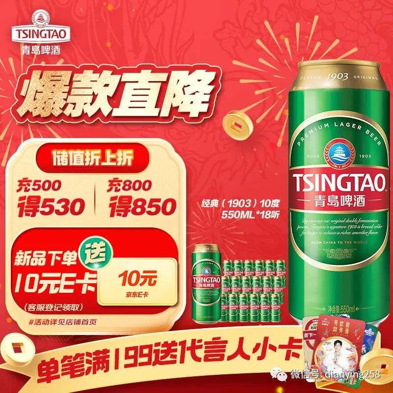 这款啤酒是青岛啤酒的经典产品,源自1903年的传统酿造工艺,采用优质麦芽、啤酒花和泉水,酒体清澈金黄,麦香浓郁,口感纯正,适合各种场合饮用。青岛啤酒是中国最早的啤酒生产企业之一,享有“中国啤酒第一品牌”的美誉。