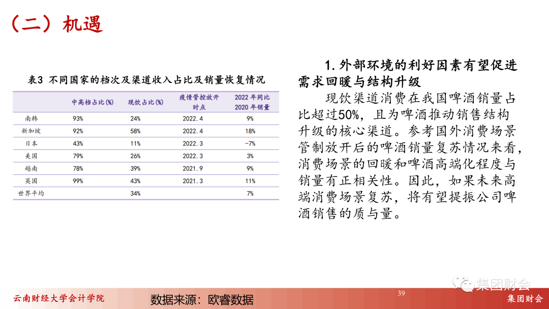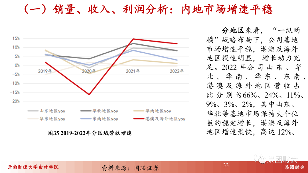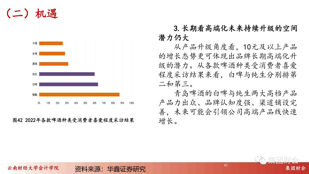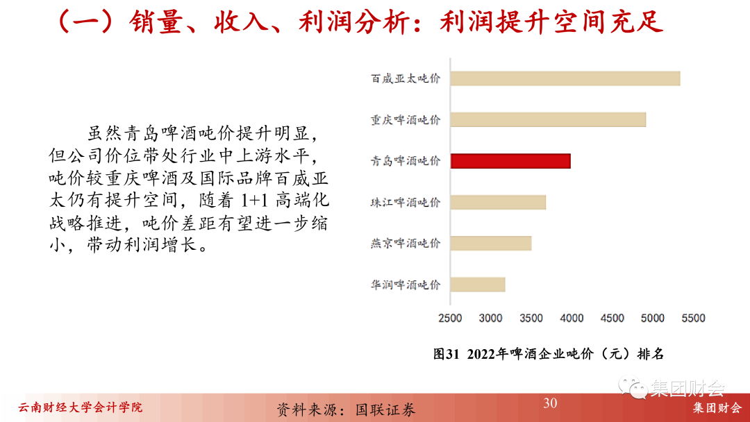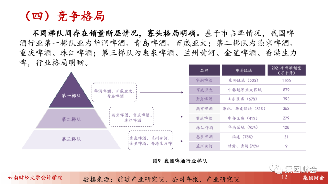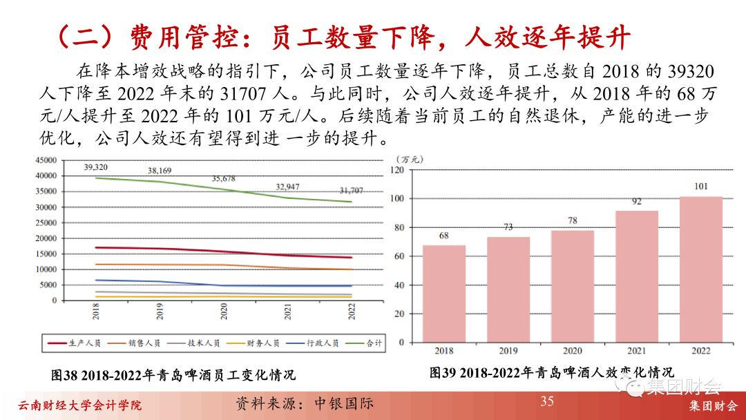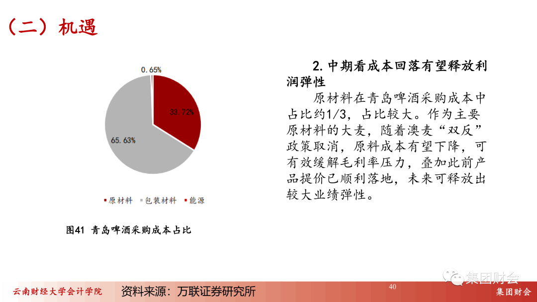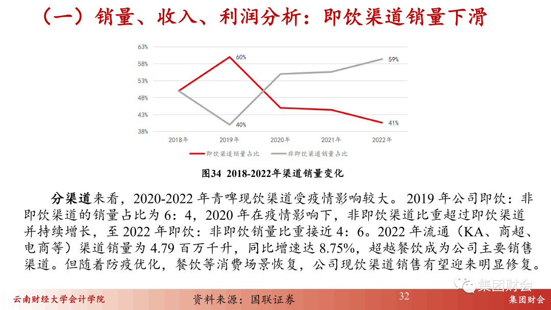 青岛啤酒作为我国啤酒行业的龙头,自1903年诞生起,就肩负起推动中国啤酒行业发展的重任,以其卓越的品质与独特的口感,受到国内外消费者钟爱。选择青岛啤酒作为研究案例,结合啤酒行业发展现状和竞争格局,分析了青岛啤酒的公司战略、产品结构和营销渠道,进一步对公司财务绩效及资本市场表现进行分析,在此基础上对青岛啤酒的未来发展趋势进行预测。旨在增加同学们对啤酒行业及青岛啤酒发展现状的了解,并给出适当的投资建议。