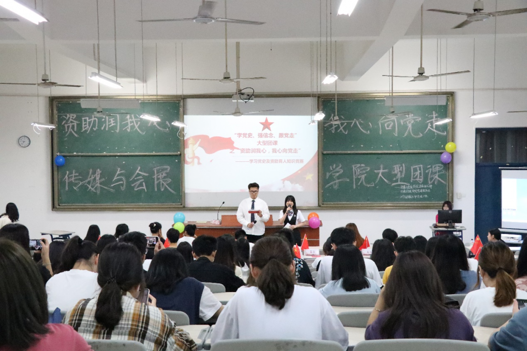百年恰风华,且看我辈今朝。党史的那头连着一代代革命先辈的矢志奋斗,党史的这头连着一个个蓬勃的青春梦想。为增进党史学习教育、丰富学子党史知识,进一步深化学生对国家资助政策的了解,强化资助工作育人效果,5月24日晚7点,传媒与会展学院于诚信楼中阶三教室举办“资助润我心,我心向党走”知识竞赛。