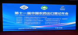 由中国国际贸易促进委员会化工行业分会主办,北京农博润禾科技有限公司、南京善植源生物科技有限公司承办的第11届中国农药出口登记年会于2023年12月14-15日在济南成功召开。
