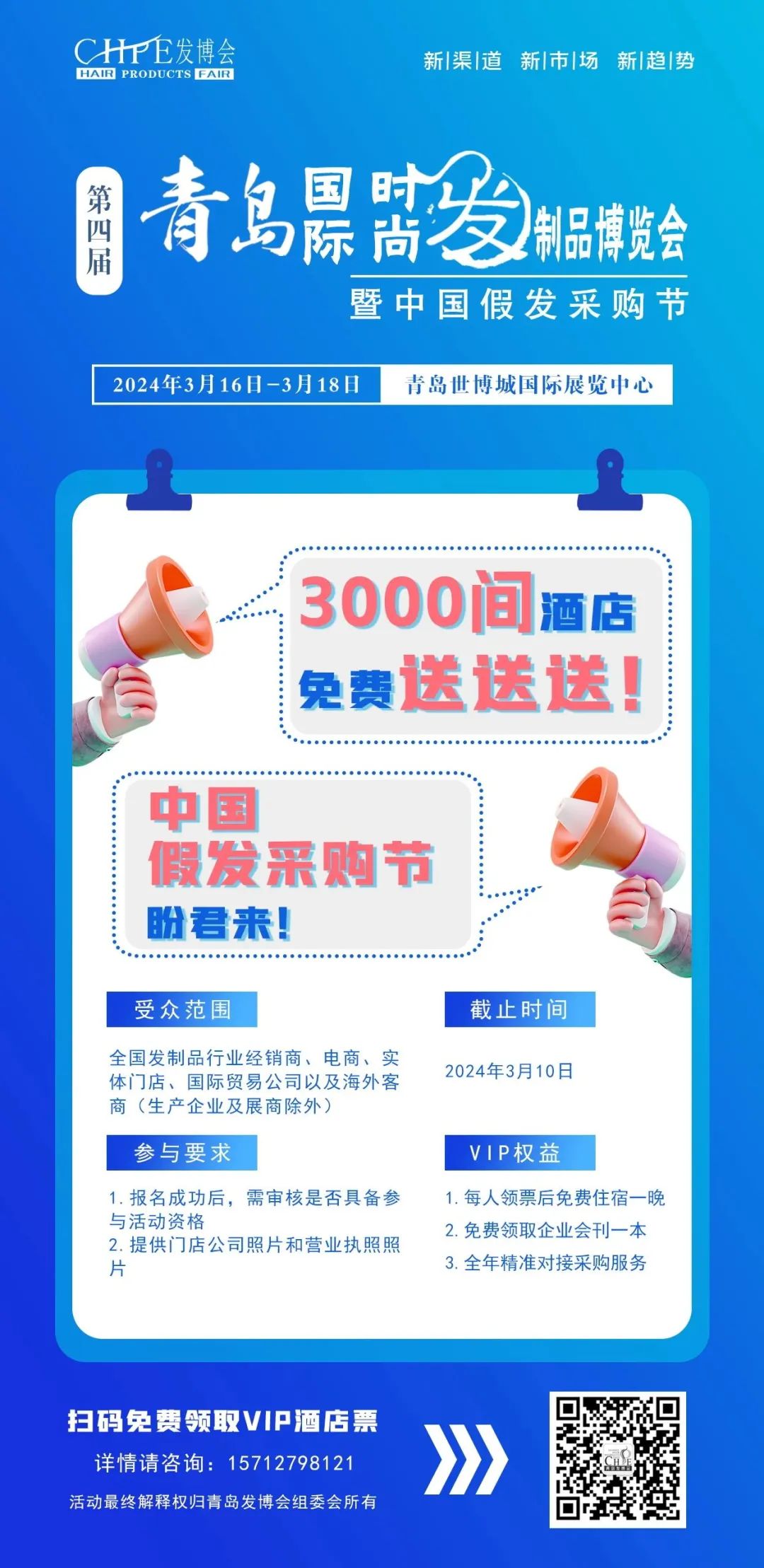我们青岛发博会一直在为发制品行业各位同仁提供一个交流、学习、分享、贸易的桥梁,为发制品企业打造品牌提升、产品外宣的一个平台,我们开放平台的目的更多是传递行业发展趋势,让生产企业和门店面对面的垂直对接,减少中间环节,提高自身市场竞争力。