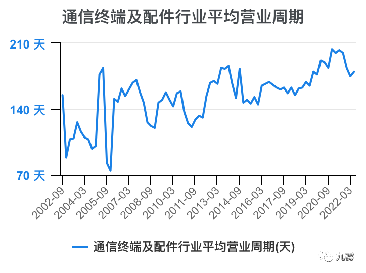 行业营业周期对比之三:电力设备及新能源、电子、石油石化、计算机、轻工制造、通信、钢铁、食品饮料