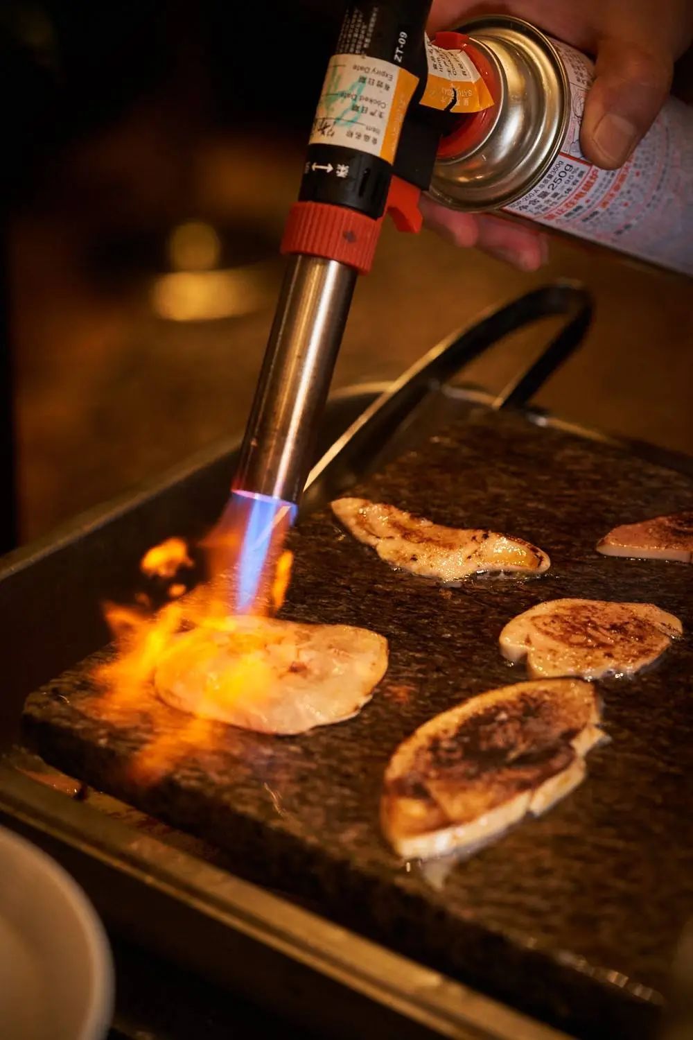 炙烤雪花牛肉、焦糖(香煎)鹅肝