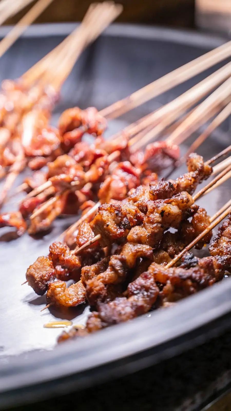 多烤一会儿,肉串带些微焦感更好吃~