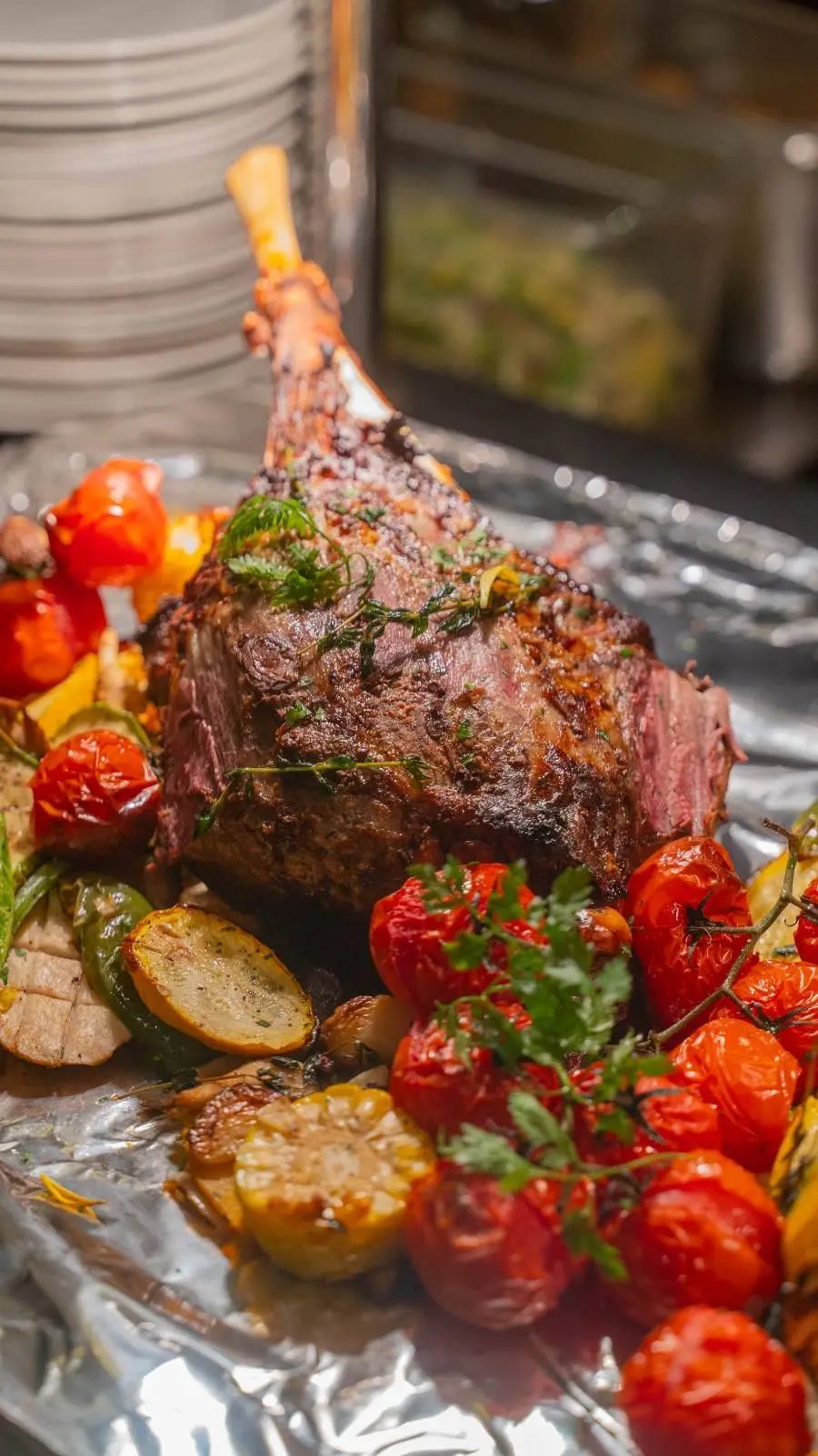 蜜汁烤带骨火腿、香草烤羊腿色泽丰润