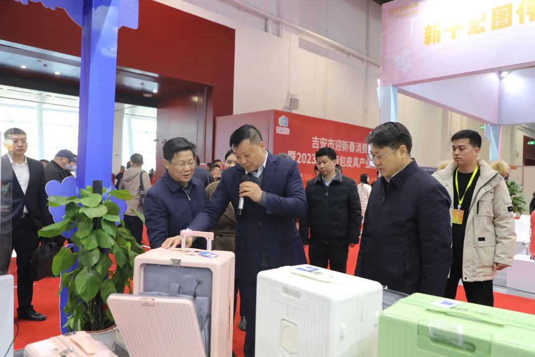 12月27日,吉安市迎新春消费季暨2023新干箱包皮具产业博览会在吉安市国际会展中心举办。