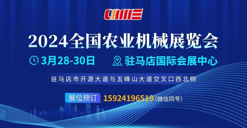简介:由中国农业机械工业协会、中国农业机械化协会、中国农业机械流通协会联合主办的全国农机展经过多年的培育和发展,已成为我国春季规模最大、最具影响力的农机宣传、推介、展示和交易平台。2024全国农机展以“高效智能农机助力农业高质量发展”为主题,将重点展示高效智能农业机械的发展成果。【详情】