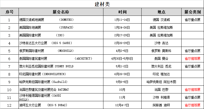 2024年常州贸促会境外展会计划-建材类