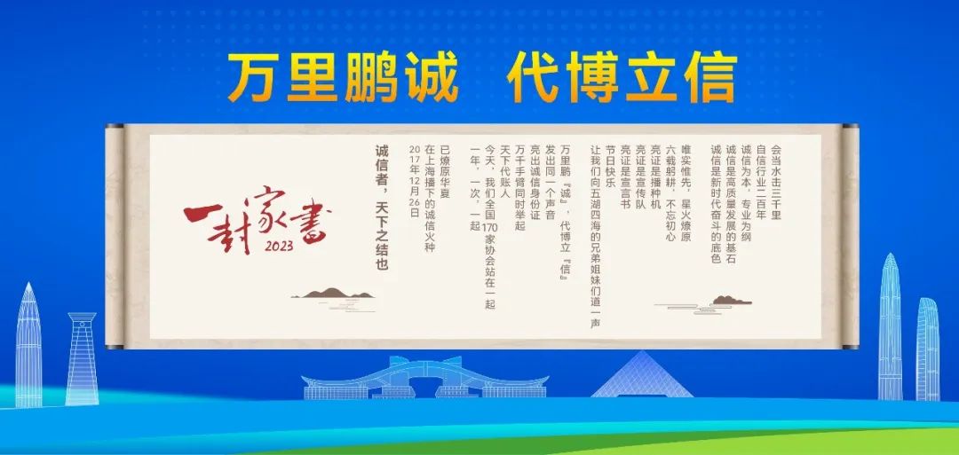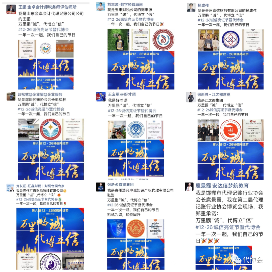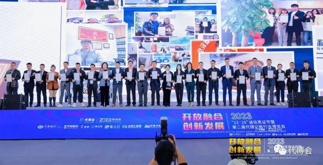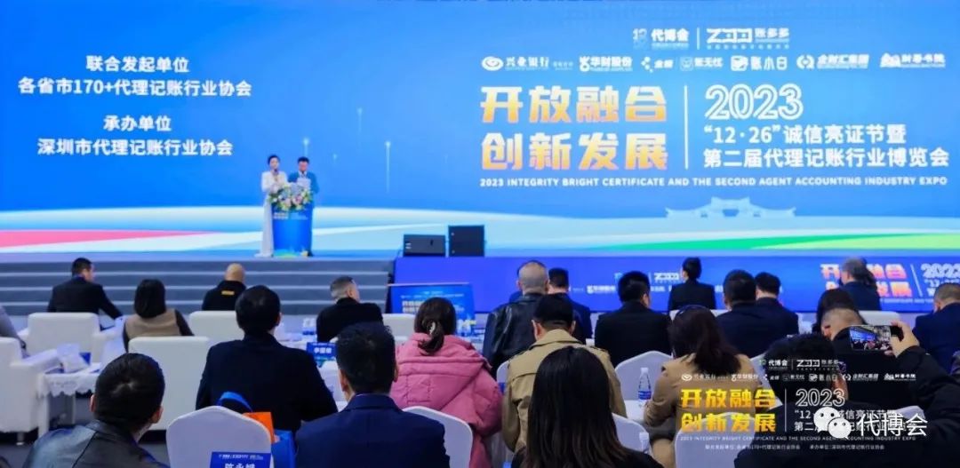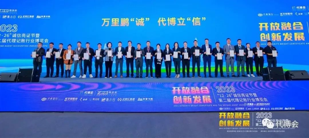 2023年12月26日上午,在第二届代理记账行业博览会开幕式上隆重举行了第六届“12·26”诚信亮证节,今年的亮证节主题是“万里鹏“诚”,代博立“信”,100余名各省市联合发起协会代表上台齐声朗诵《一封家书(2023)》,再一次将诚信的种子播向行业的每一个角落。