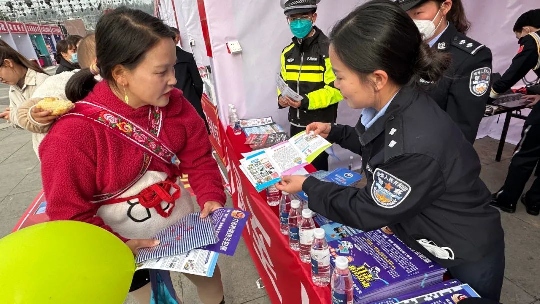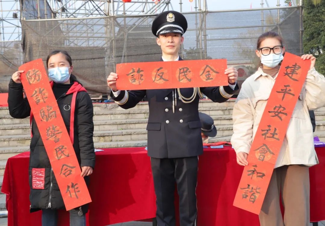 在咨询台,“大家扫码答题,答完题凭答题页面领取礼物。”宣传民警们说。同时,民警瓦粒现场书写春联赠送群众,一幅幅散发着清新墨香的喜庆春联跃然于纸上,既有辞旧迎新的美好愿景,也有反诈常识、守护群众安宁的励志高歌。