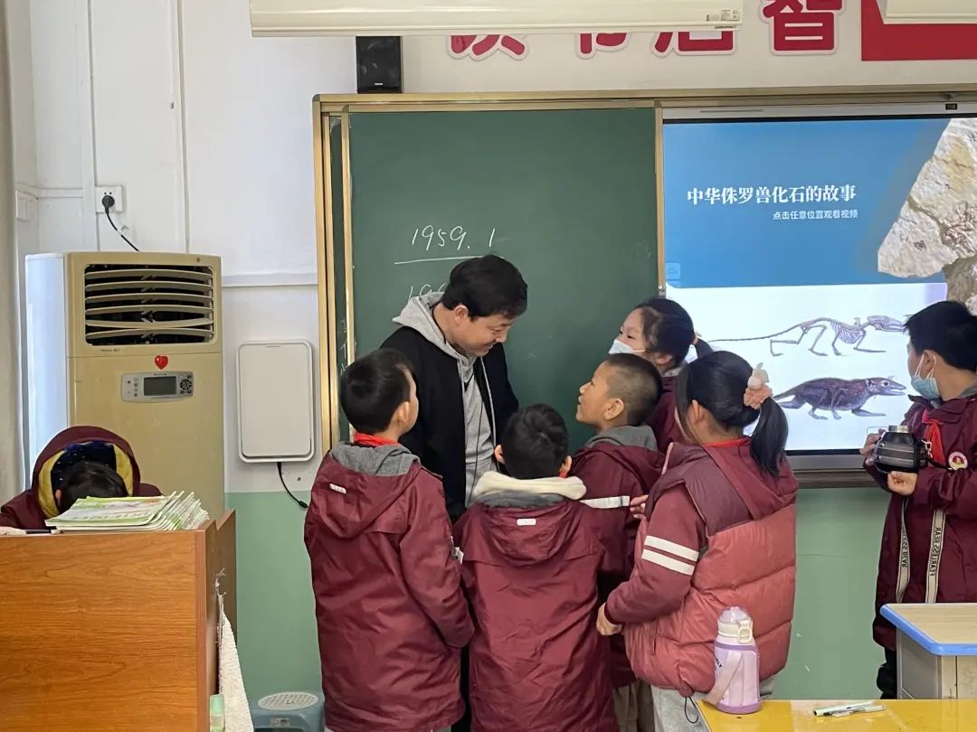 乐居厂小学邀请博物馆讲解员走进乐小校园,为孩子们讲解恐龙的分类演化、繁荣发展到最终灭绝,一系列生动的图文介绍让孩子们感受恐龙家族繁盛兴衰的历程。