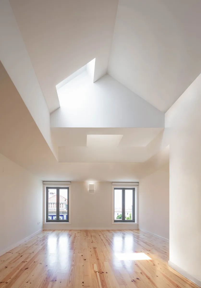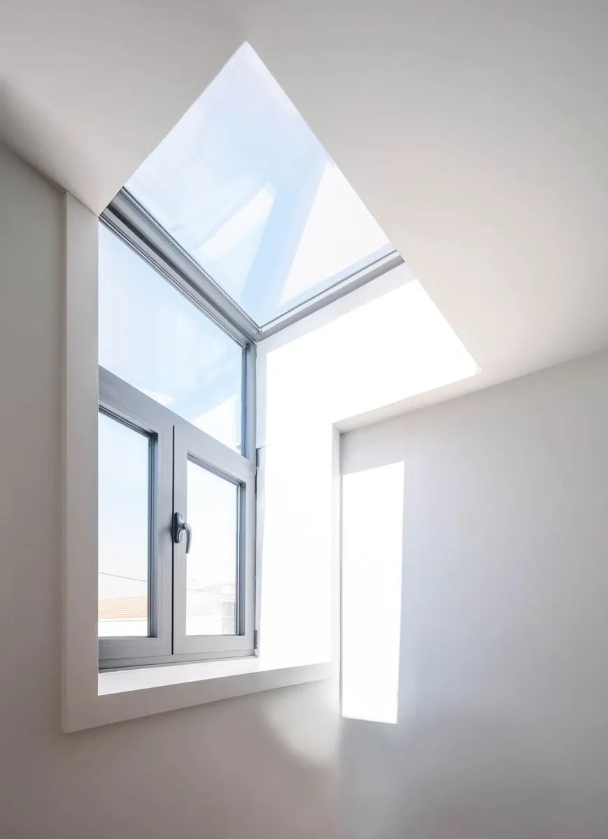 女儿和儿子的房间面向西北,采用了一个减少声流的功能,增加了稀缺的自然采光,它一直在滑动开口的表面,使它们向天空弯曲。