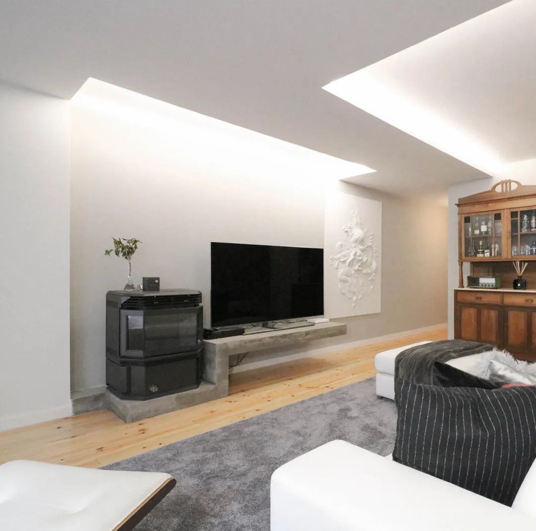 该项目位于一个狭长的地块上。一楼的面积延伸到标准立面线之外。扩展的区域包含厨房和pátio。