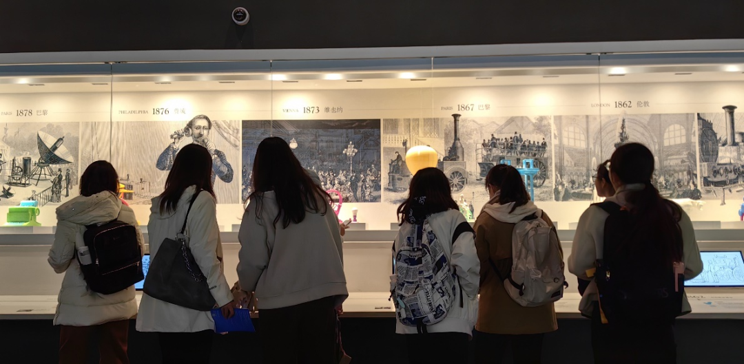 同学们带着之前预习的成果踏入展厅,在参观过程中继续进行着思考。我们在展厅介绍中看到,“1929-1965年期间举行的世博会反映的室克服分歧,以及将寻求平衡和维护和平作为探讨的中心议题”。于是我们不禁开始思考,在几十年后的今天,我们又迎来了新的变局与挑战,在新时代的形势下,和平与稳定仍然是我们发展道路上始终的追求。中国式现代化道路反对走“国强必霸”的西式现代化老路,始终坚持合作、共赢的开放式发展,走“以合作取代对抗,以共赢取代独占”的现代化之路。在参观中,我们更能体会到中国式现代化理念与人类文明追求的契合,感悟到中国式现代化道路与人类发展理想途径的重合。
