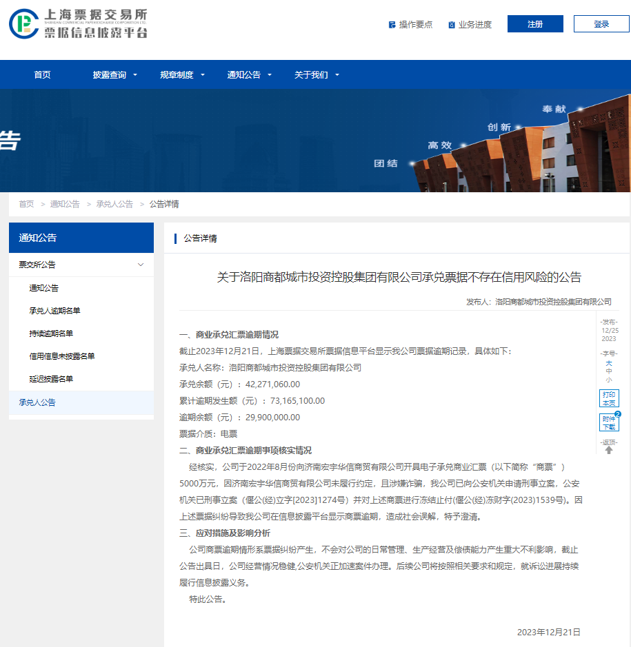 来源|上海票据交易所票据信息披露平台 洛阳商都城投