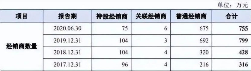在2017年至2019年期间,国台酒业的经销商数量从318家迅速增加至799家。到了2019年,持有国台酒业股权的经销商数量更是达到了104家。
