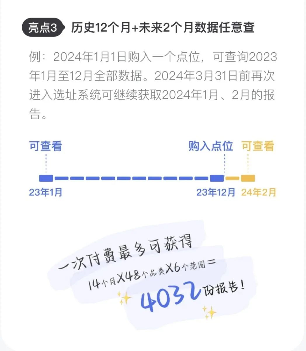 仅需消耗1次点位评估次数,后续3个月内,可无限次继续评估该点位的全部品类数据,报告生成后可永久访问!