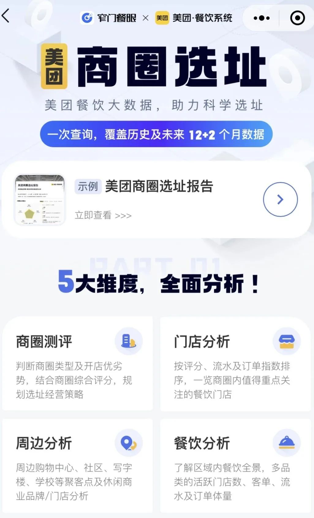 窄门餐眼与美团餐饮系统官方合作,推出了这款商圈选址功能。