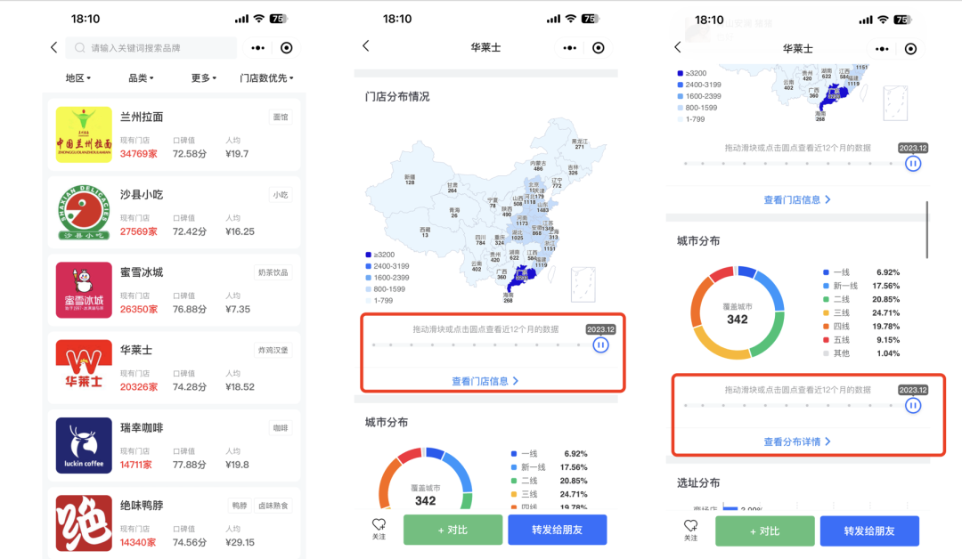 各品牌的门店分布、城市分布,已经支持查看过去12个月的历史数据