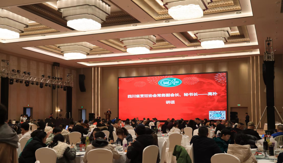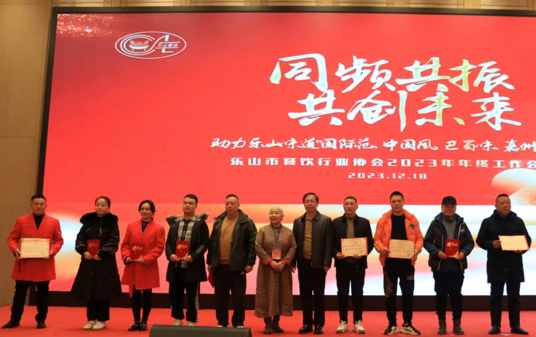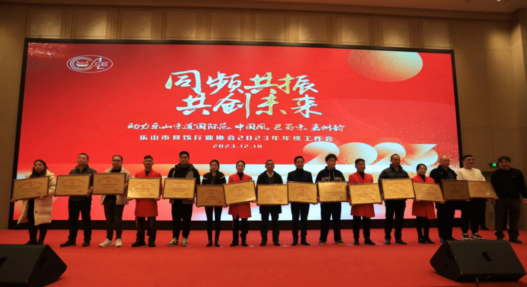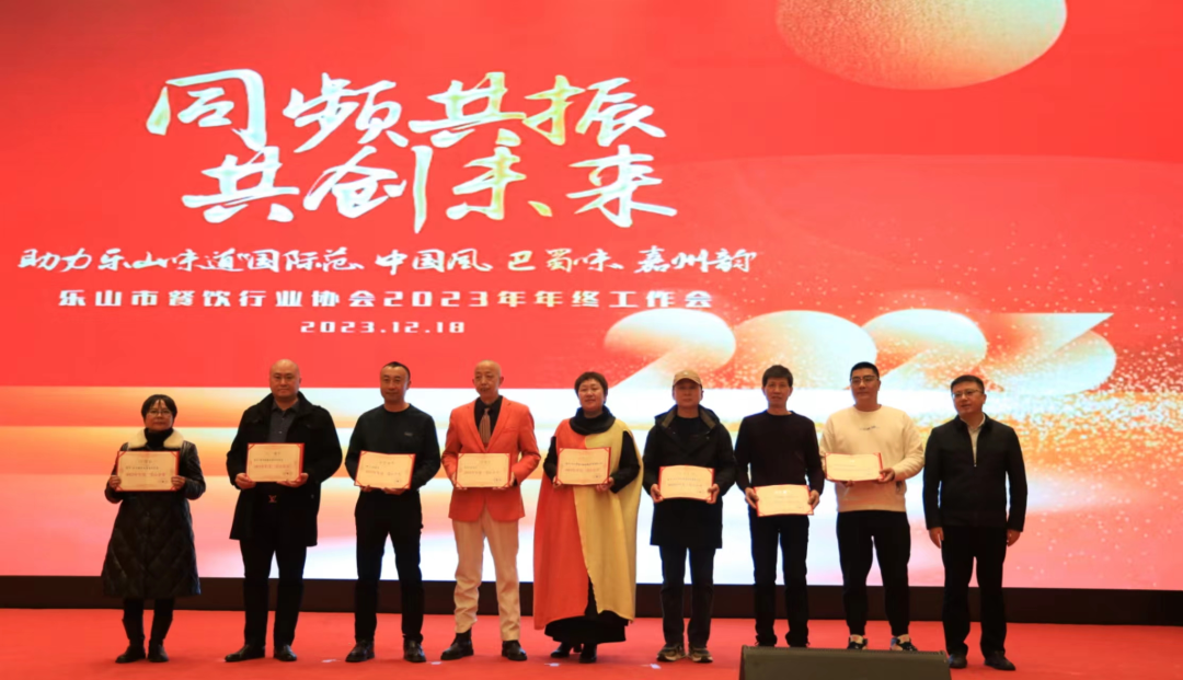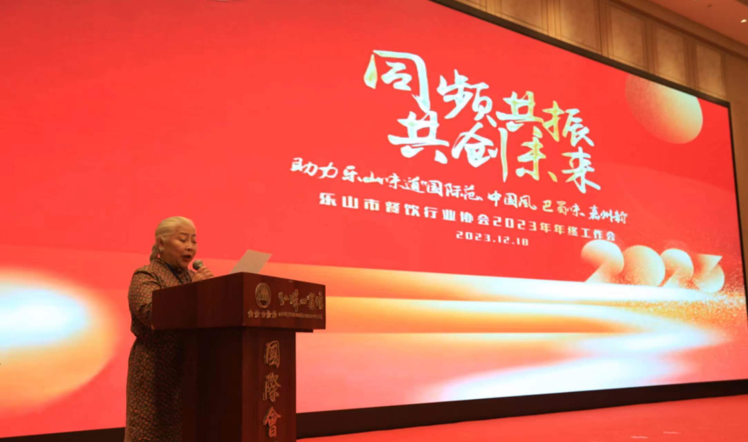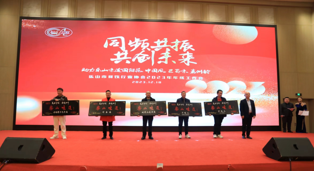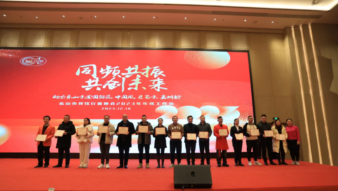 2023年12月18日,峨眉山下,红珠湖畔。以“同频共振,共创未来”为主题,助力乐山味道“国际范,中国风,巴蜀味,嘉州韵”的乐山市餐饮行业协会 2023 年年终工作会暨嘉州晚宴活动在峨眉山市红珠山宾馆胜利举行。
