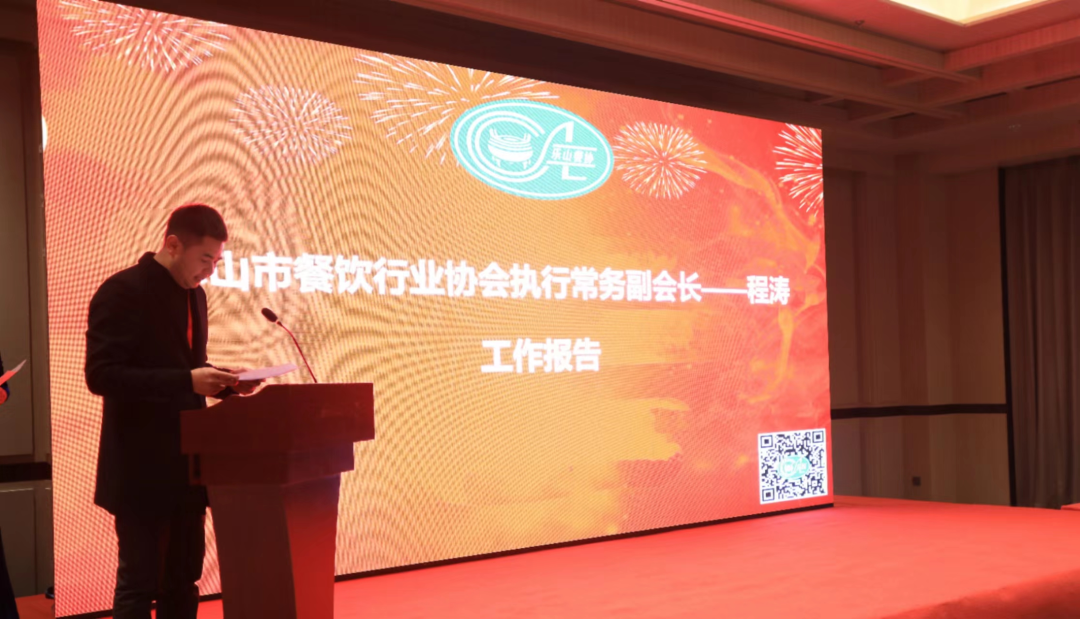 乐山市餐饮行业协会执行常务副会长程涛,协会财务、金叶大酒店总经理张勤,分别代表第四届理事会在年终总结会上作《工作报告》和《财务工作报告》。