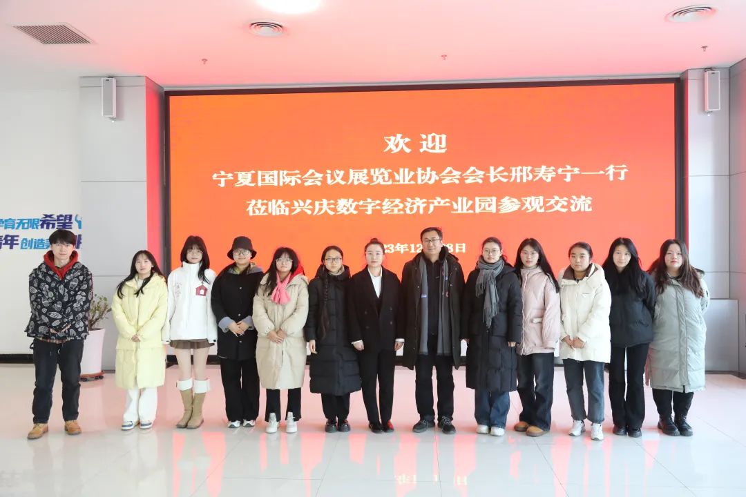 12月28日上午,宁夏国际会议展览业协会会长邢寿宁携银川能源学院大四秘书班的同学组成的调研团队莅临兴庆数字经济产业园参观调研。